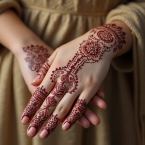 جمال الحناء يمتد أكثر من مجرد مظهر جمالي. يحتوي على معاني رمزية وعاطفية عميقة. تعبر عن الفرح والاحتفال، وتمثل رمزا للخصوبة والنماء.