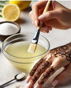 يُعتبر خليط السكر والليمون من أكثر الطرق فعالية لتعزيز لون الحناء وزيادة عمقه وثباته للحصول على نقش حناء غامق ومميز. يتم تحضير الخليط عن طريق مزج السكر مع كمية مناسبة من الماء، ثم غليه حتى يذوب السكر تمامًا. بعد أن يبرد الخليط، يُضاف إليه بضع قطرات من عصير الليمون الطازج. يُستخدم الخليط عن طريق غمس قطعة قطنية أو فرشاة صغيرة فيه وتطبيقه بلطف على الحناء بعد أن تجف جزئيًا. يعمل السكر في هذا الخليط على تثبيت الحناء بالجلد، بينما يساعد الليمون على إطلاق صبغة الحناء الطبيعية وتعميق لونها. يُكرر وضع الخليط على الحناء كلما جفت للحصول على أفضل النتائج، مما يؤدي إلى لون غامق وثابت يستمر لفترة أطول.